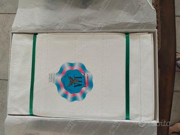 Confezione mai aperta di sei asciugamani ancora imballate e con scatola originale di nota ditta di tessili di Scafati