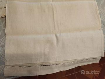 Due federe e due asciugamani in spesso tessuto che (credo!) sia misto lino/cotone.