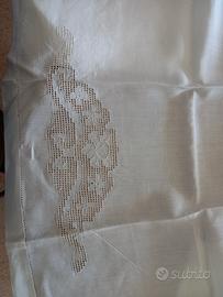 3 grandi asciugamani con ricami diversi di cui 2 bianchi 1 panna 110cmx 65 i due bianchi, quello panna 110x78