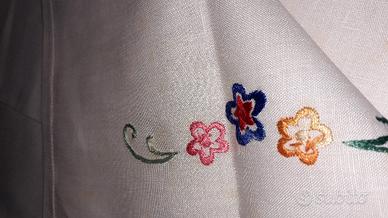 Asciugamani in puro lino, 1 grande e 1 piccolo, finemente ricamati come da foto, nuovi mai usati. Vanno solo lavati per sbiancarli