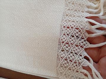 asciugamani in tela antica fatta al telaio .allacciata al macramè.ingiallite dal tempo.6 PZ €200.1 PZ €40