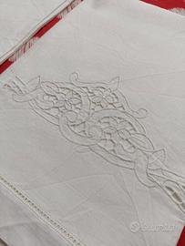 Asciugamani in lino, ricamo a intaglio. Misure 135 x 69. Prezzo: 70 euro la coppia Disponibile alla consegna presso mia abitazione, o alla spedizione