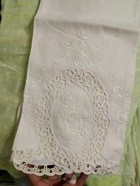 Set di asciugamani di puro lino ricamati a mano. Il set è composto da 3 asciugamani grandi e 3 piccoli. Prezzo di acquisto: 180€