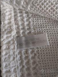 Puro cotone a nido d'ape bianco. 1 Asciugamano misure: 99x54 e 1 ospite misure: 52x35 (n.2117)