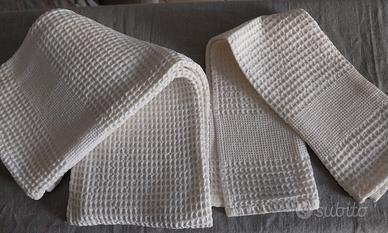Marca Re Sole. Puro cotone a nido d'ape bianco. 1 Asciugamano misure: 100x52 e 1 ospite misure: 56x40. (n.2118)