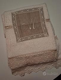 asciugamani ricamati a mano con logo. meraviglioso pizzo.
