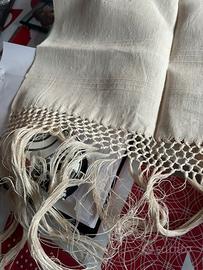 Vendo coppia di asciugamani in lino, vintage, nuovi, con frange, lunghezza cm 116 larghezza cm 65. Prezzo 15 euro