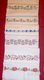 Asciugamani viso + ospite x 5. Interamente ricamati a mano in lino. NUOVI