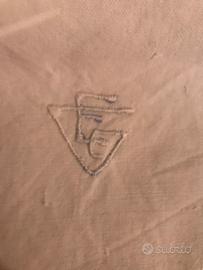 Con bordo e orlo a giorno e iniziali in cotone bianco. Qualche imperfezione del cotone vedi ultima foto