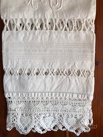 Asciugamano vintage in tela di canapa ricamato a mano - misure 123x67 cm