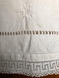 Asciugamano vintage in tela di canapa ricamato a mano - misure 142x74cm