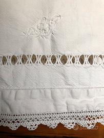 Asciugamano vintage in tela di canapa ricamato a mano - misure 126x66cm
