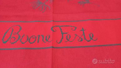 asciugapiatti natalizi ricamati a mano, puro cotone 100%, misure 79x56.