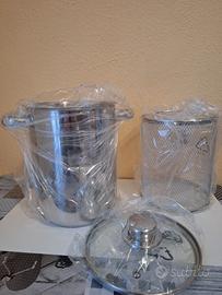 Aspargera in acciaio e bachelite, con coperchio in vetro, da 16X21 cm.