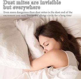 Sistema di filtrazione altamente efficiente: Aspira Acari Per Materassi separa efficacemente l'aria pulita dalla polvere senza perdite. La pulizia regolare del filtro lavabile previene la perdita di aspirazione e l'intasamento e mantiene buone prestazioni di aspirazione. Facile da pulire: Aspirapolvere Materassi è facile da smontare e pulire. Il filtro è lavabile e riutilizzabile. Non è necessario preoccuparsi della perdita di aspirazione o dell'intasamento del contenitore della polvere dopo la pulizia. L'aspirapolvere per materassi mantiene una forte potenza di aspirazione per sempre. Potente aspirazione: con una potenza di aspirazione fino a 8000 Pa, l'Aspiratore Portatile Battimaterasso è uno strumento efficace per rimuovere la polvere e lo sporco ostinati dai materassi. L'Aspiratore Portatile può anche rimuovere facilmente peli e forfora di animali domestici. Adatto per materassi, tappeti, cuscini, tappetini, lenzuola, coperte e mobili. Funzionamento senza fili: il Mini Aspirapolvere Senza Fili è dotato di un connettore universale di tipo C per una ricarica facile e veloce. Quando è completamente carico, funziona senza fili, in modo da poterlo utilizzare sempre e ovunque senza il fastidio dei cavi. Prestazioni superiori: Aspirapolvere per Materassi Senza Fili offre una combinazione unica di vibrazioni ad alta frequenza, potente aspirazione e pulizia UV. La vibrazione ad alta frequenza scioglie lo sporco dal materasso, mentre la potente aspirazione lo aspira efficacemente. Inoltre, la luce UV garantisce una pulizia più accurata e igienica del materasso. Aspirapolvere da Letto Senza Fili – Pulizia Profonda Antiacaro! Dormi meglio con un letto davvero pulito! Questo aspirapolvere portatile da 100W rimuove polvere, acari e allergeni grazie alla potente aspirazione da 8 KPa e al filtro HEPA. Caratteristiche principali: Potente aspirazione da 8 KPa per una pulizia profonda. Senza fili – massimo comfort e libertà di movimento. 2 velocità regolabili per ogni es