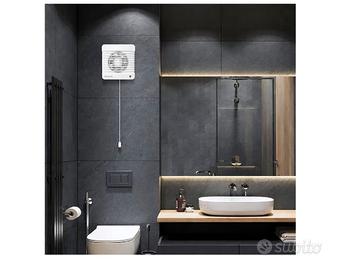 Aspiratore Bagno 100 MM, Estrattore d’Aria Silenzioso con Interruttore a Cordicella, Valvola di Non Ritorno + Zanzariera Integrata, 7W, 26 dB, 78 m³/h, per WC Cucina, Montaggio Parete
