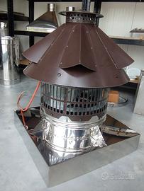 L'aspiratore standard, al prezzo di vendita indicato nell'annuncio, viene fornito con imbocco circolare da 350 mm. ma eventualmente può essere fornito con adattatore circolare per l'innesto su tubo di diversa misura, sia mono che doppia parete, oppure con adattatore quadro o rettangolare per l'alloggio su canne fumarie esistenti in muratura.