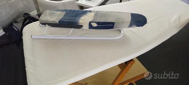 Asse da Stiro Foppapedretti, pieghevole in legno. Insieme stiramaniche in alluminio. L'asse ha 2 piccoli difetti da usura come contrassegnato in fotografia. La riparazione che ho eseguito fa si che la stabilità e la funzionalità dell'oggetto non siano compromesse.