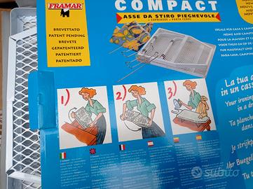 COMPACT, Asse da stiro pieghevole + copri asse + porta ferro le misure in foto