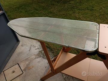 Asse da stiro in legno, molto solida e comoda con piano per appoggiare la biancheria.