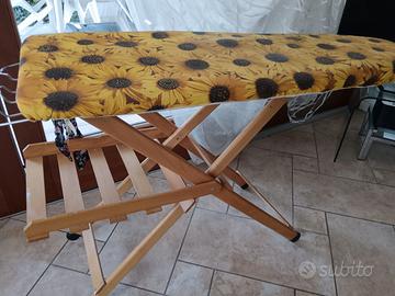 Vendo asse da stiro in legno robusto e pesante. Buone condizioni; ha solo un piccolo dislivello in una delle tre tavole di legno (come da foto) ma rimediabile imbottendo il tavolo con due copri-asse . Solo consegna a mano.