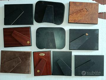Assortimento di piccoli porta ritratti da tavolo, 6 in radica e quattro in legno. I due ovali doppi 15€ ciascuno, gli altri 6 €. L' intero lotto 60 €