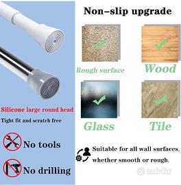 1 asta estensibile per tende, non arrugginisce, telescopica, senza foratura, in acciaio inox 304, per bagno, cucina ed esterni (185-250 cm, bianco)
