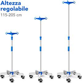 Asta per flebo ACCIAIO INOX 4 ganci e portaflebo