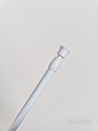 Asta per tende/divisori / organizzatore a pressione telescopica estensibile e regolabile, da minimo 60 cm a massimo 110 cm, diametro 1,3 cm. L'asta è in metallo verniciato bianco, le estremità sono in gomma antiscivolo ed aumentano lattrito. Non sono necessari attrezzi o fissaggi; senza viti, colla o fori; nessun danno a pareti, porte, finestre o armadio. Solo bisogno di regolare la lunghezza per bloccato tra le pareti.