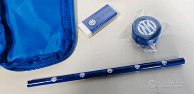 Prodotto ufficiale F.C. Inter, astuccio contenente matita, temperino e gomma da cancellare, tutti oggetti marchiati Inter