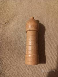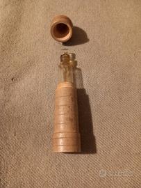 Astuccio antico in legno tornito e munito di coperchio a vite. Al suo interno un botticino per medicinale. Tutto originale. misura cm 8,5 di altezza totale. E' un oggetto raro ed inusuale.