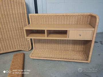 Vendo letto matrimoniale in midollino naturale, completo di testiera, struttura e comodini coordinati.