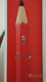 Attaccapanni di colore rosso a forma di matita. Alto circa 1,40m. Si presenta come nuovo, senza segni di usura o danneggiamento.
