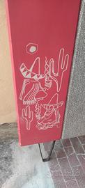 Appendiabiti a parete anni 70 A tema Messico.usato ma in ottime condizioni Con specchio e strutture porta borse in metallo Misure :Altezza cm 170 x larghezza cm 107 x profonditá poggia borsa cm 25