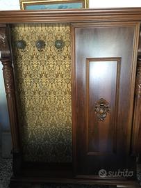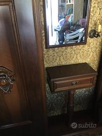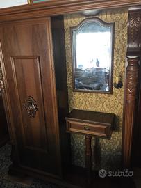 Attaccapanni con porta scorrevole in legno di colore noce (vedi foto) nella parte Sx e' presente un porta abiti con Tre (3) sostegni in quella Dx invece una aplique con Tavollino e specchio.