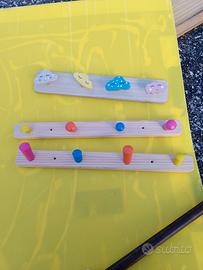 Tre attaccapanni a 4 pomelli colorati dove il tuo bambino può appendere zaini, cappelli o collane.