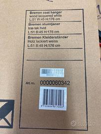 Bremen Appendiabiti, cornice e base di gomma laccata bianca NC bianca, con dettagli asimmetrici, 51x45x176 cm
