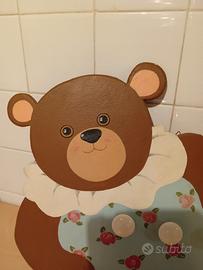 Attaccapanni raffigurante una orsa per camera dei bambini, fatto artigianalmente con 3 pomelli appendi abiti lunghezza cm.63