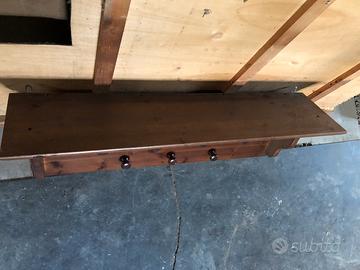Attacca panni da parete vintage in legno dipinto con parte suoeriore che fa da mensola