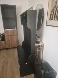 L'appendiabiti è dotato di un ampio spazio di archiviazione con 5 ganci doppi, 2 ripiani aperti e 1 mobile chiuso per riporre borse, cappelli, vestiti, decorazioni e altri oggetti. Il mobile può essere utilizzato anche come panca per cambiare le scarpe o riposare. L'appendiabiti ha un look minimalista che si adatta a diversi stili di casa. Offre una varietà di opzioni di archiviazione risparmiando spazio.