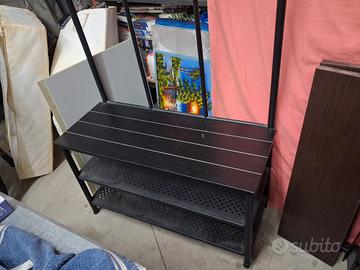 Attaccapanni con panchina e portascarpe in metallo e legno. Ritiro a carico dell'acquirente