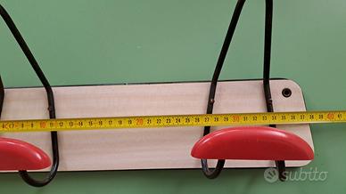 Attaccapanni da parete, con 2 ganci e accessori colore rosso/nero, realizzato in legno compresso e formica anni '70.