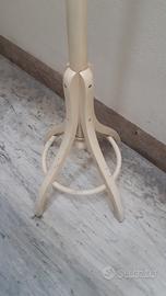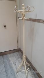 Appendiabiti vintage in legno colore bianco avorio qualche segno del tempo ma im buone condizioni. Misure: altezza 1,90m larghezza base 52cm