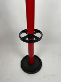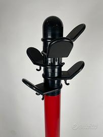 Attaccapanni da terra design modernariato anni ‘80, realizzato con struttura in metallo verniciato rosso e accessori in plastica nera.