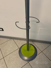 Vendo attaccapanni da terra dal design moderno, con struttura color grigio e dettagli verde lime.