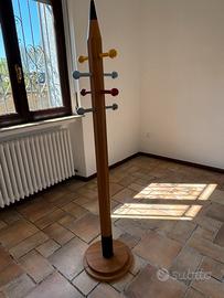 Grazioso attaccapanni a piantana, a forma di matita colorata, ideale per la cameretta dei bambini. È realizzato in legno di olmo. Presenta qualche piccolo segno di usura dovuto al tempo ma è tuttavia in buonissime condizioni. Non spedisco, solo ritiro sul posto