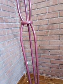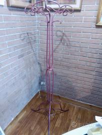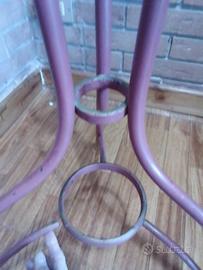 ancora bello color vinaccia chiaro con profili dorati in fondo alla base manca un punto di saldatura facilmente risolvibile ma che non preclude l'ottima stabilità altezza 160 circa ingombro piedi 60 circa ferro battuto laccato presenta i segni del tempo ma molto di fascino ritiro a mano a Bologna