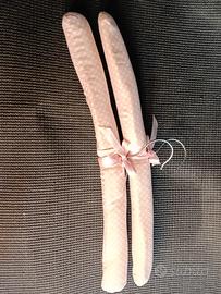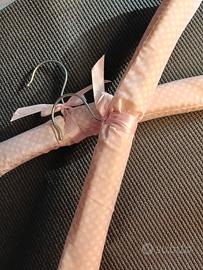 Coppia di attaccapanni imbottiti per abitini da bambina. Tinta: rosa a pois con fiocchetto in raso.