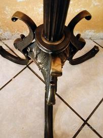 Attaccapanni interamente in ottone ornato con 4 appendiabiti girevoli e ganci porta ombrelli/borse. Base a tre piedi in ottone ornato. H. cm. 180.