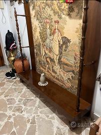 Vendo splendido mobile da ingresso con arazzo decorativo. Altezza 180cm Larghezza 142cm Profondità 31cm Composto da: -struttura in legno. -5 appendiabiti. -2 applique. -ripiano inferiore. -aste laterali portaombrelli. Buonissime condizioni